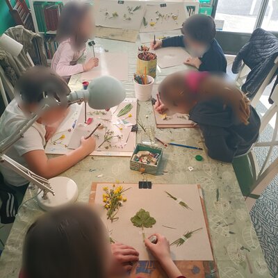 Mi piace sentire i miei lavori nel mio studio che si veste di verdi, di azzurri, di rami e semi in volo, foglie, dettagli, visioni. Ci sono tele elette, molte chiedono tempo: stanno lì ad aspettare, perché ci devo tornare sopra, magari passano mesi, a volte qualche annetto.
